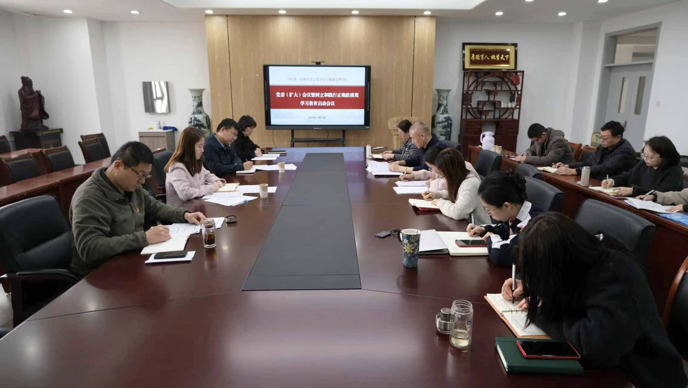 3月13日上午,学院召开党委(扩大)会议,学习贯彻习近平总书记关于树立和践行正确政绩观学习教育的重要讲话和重要指示精神,传达学习中央、省委和校(院)党委关于开展树立和践行正确政绩观学习教育的部署要求