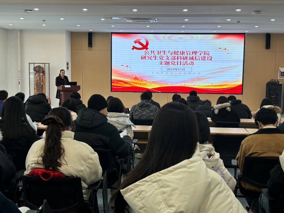 为深入贯彻落实科研诚信建设相关要求,切实强化研究生党员的学术道德意识,12 月 11 日上午,公共卫生与健康管理学院研究生第一、第二党支部以 “加强科研诚信建设,优化科技创新环境” 为主题,联合开展主题党日活动。学院副院长贾强出席,研究生党支部全体党员共同参与活动,活动由研究生第二党支部书记李新凤主持。