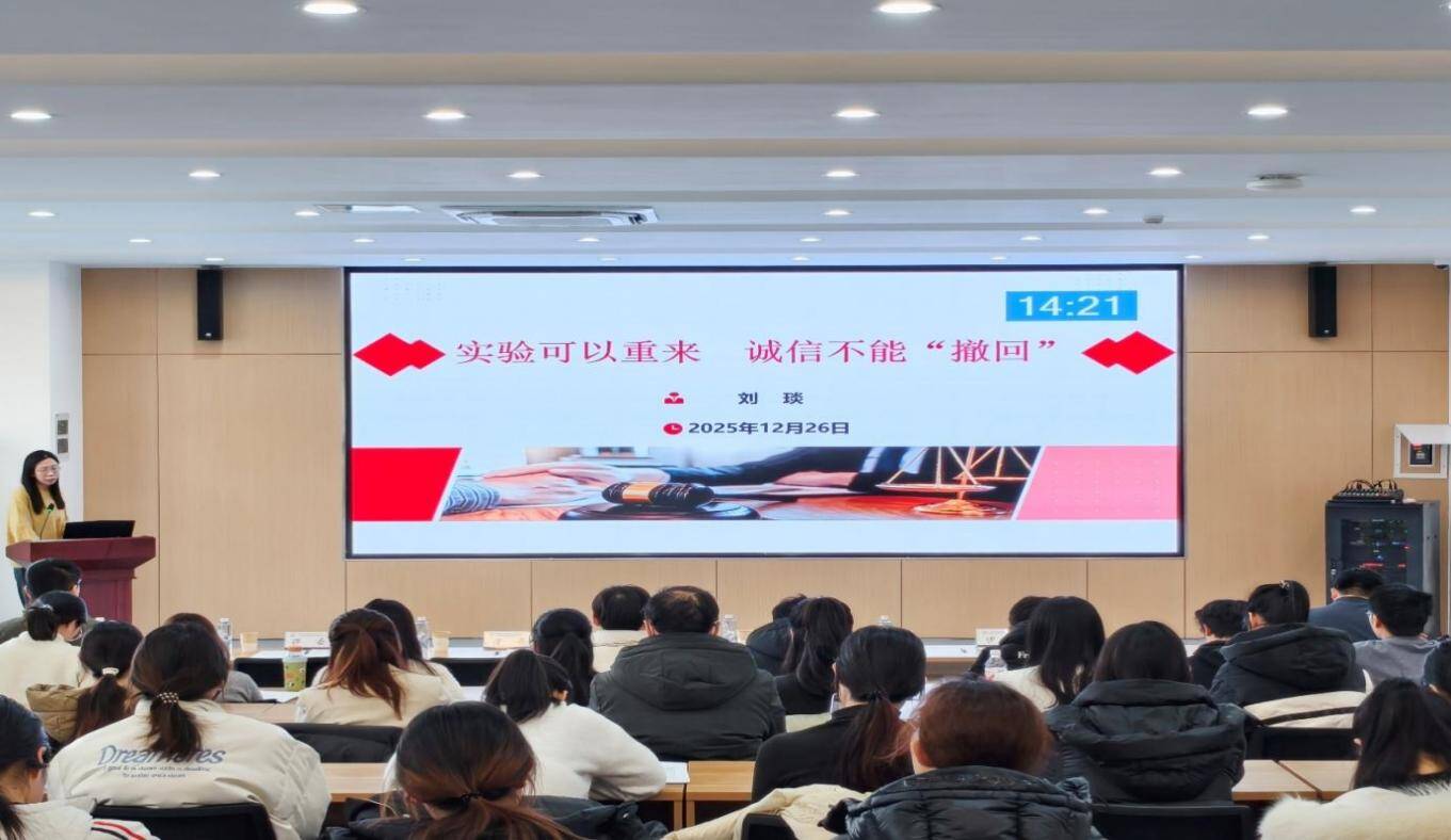 李刚以“预防为主,规范实验”为主线,系统梳理实验室概况、安全规范、个体防护及典型事故案例,强调安全是科研底线,是一切科研工作的前提。刘琰以“实验可以重来,诚信不能撤回”为题,援引哈佛学术造假等案例,阐释数据真实、署名规范、伦理合规的核心要求,引导学生坚守学术诚信。