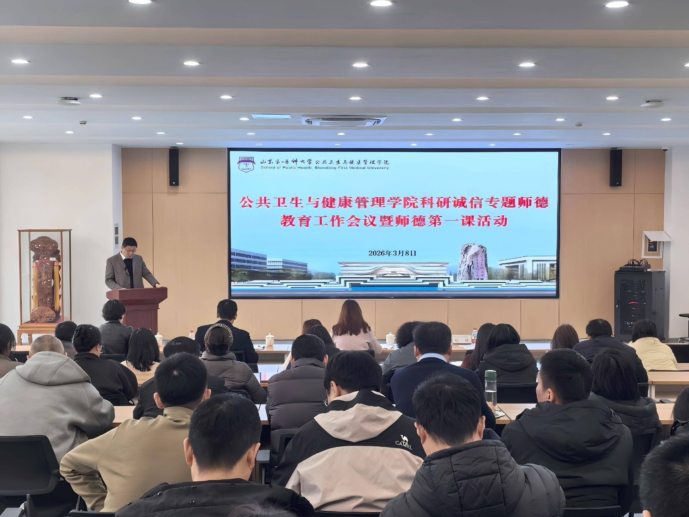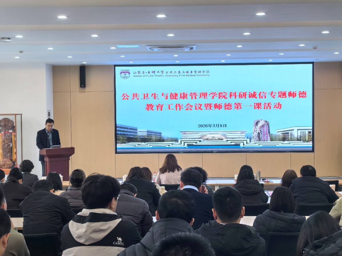为深入贯彻落实立德树人根本任务,进一步强化全院教师的学术道德意识,营造风清气正的科研生态,3月8日下午,公共卫生与健康管理学院组织开展师德师风警示教育暨师德第一课活动,活动由党委委员、副院长纪龙主持。
