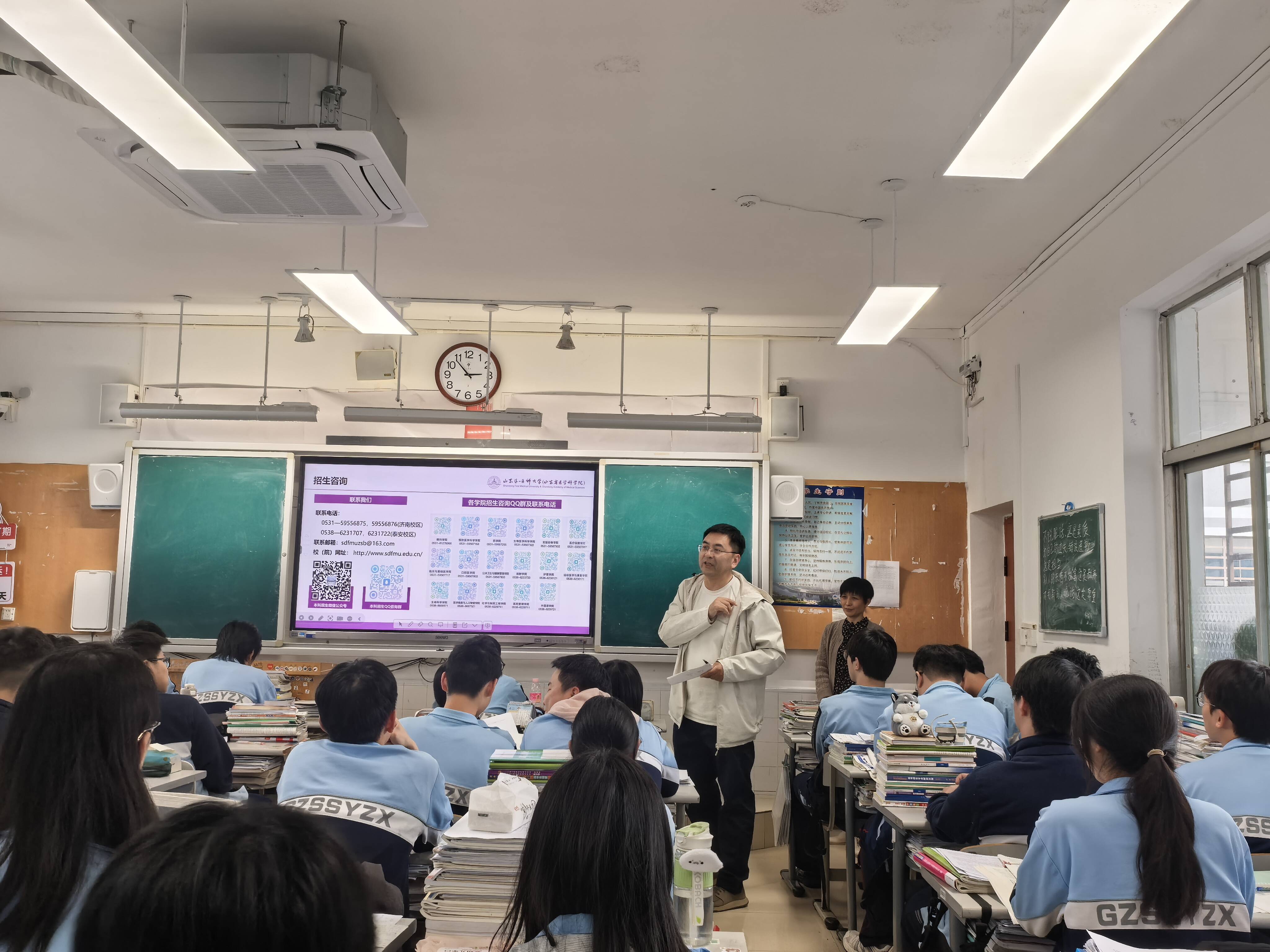 宣讲现场,校(院)招生宣传实践工作组面向高三学子开展招生政策宣讲,结合双高建设定位,全方位展示学校办学实力、育人成果与发展前景等,围绕专业选择、报考条件等考生关心的热点问题进行细致解读,现场耐心解答同学们咨询疑问,帮助广大高三学子清晰了解校(院)依托双高建设打造的专业优势和育人特色,科学规划升学方向。