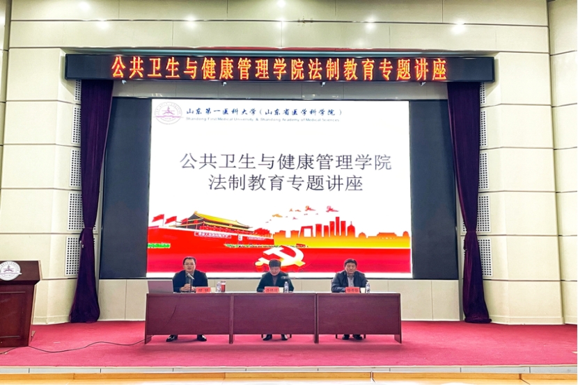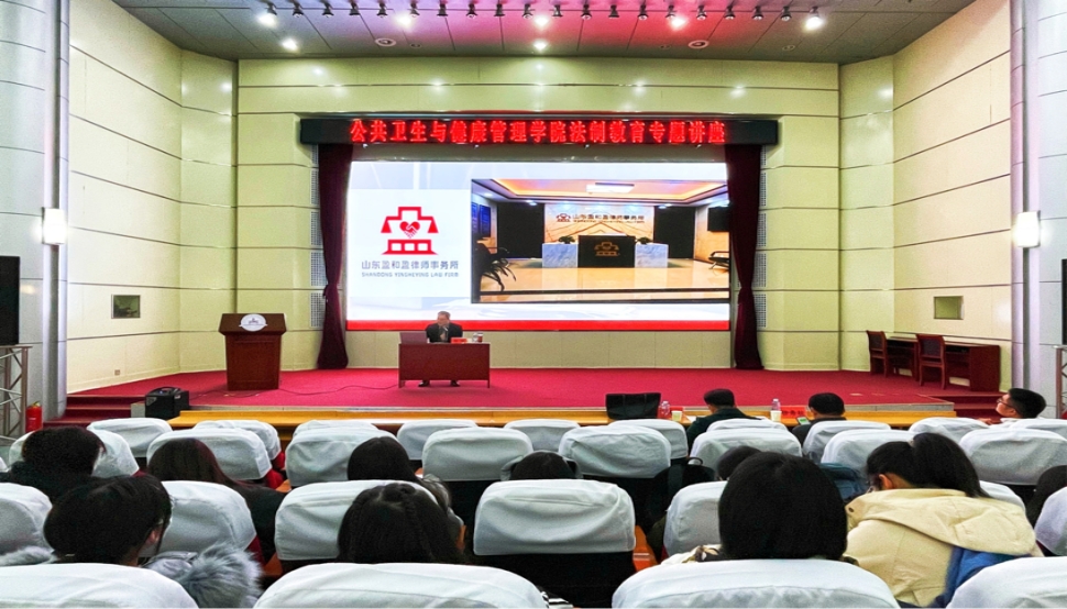 12月3日下午,公共卫生与健康管理学院在长城路校区图书馆报告厅举办了法制教育专题讲座。邀请的主讲嘉宾是山东盈和盈律师事务所何明律师,公共卫生与健康管理学院党委副书记齐艳波、副院长徐希柱出席了此次讲座。