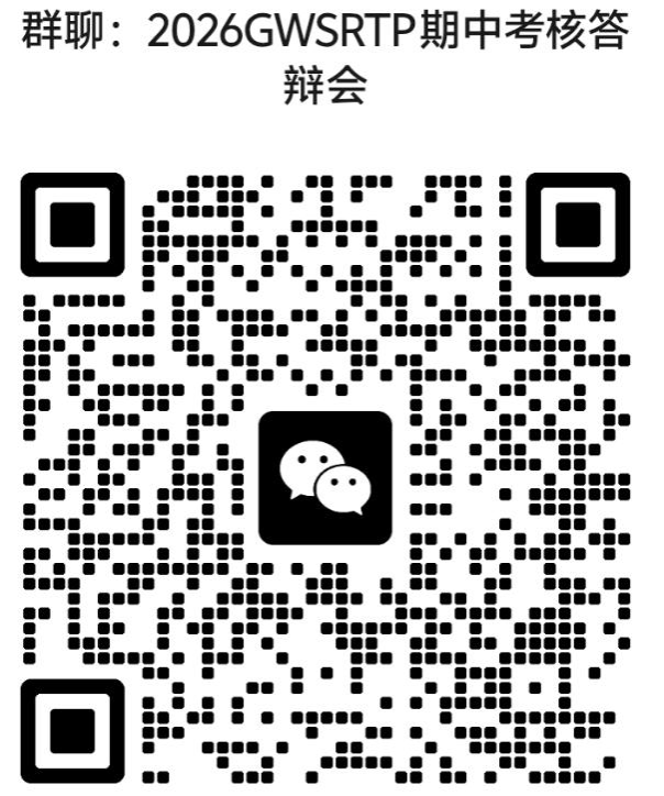 按时到场:请各项目组负责人及成员提前 15 分钟到达答辩现场,项目负责人需在答辩前加入 2026GWSRTP 中期答辩会微信群 ,群内线上抽签决定答辩顺序。