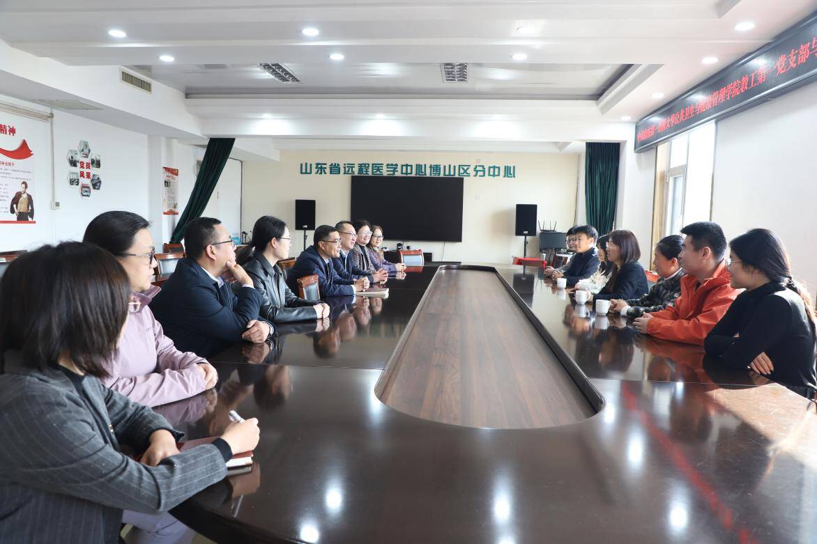 博山区人民医院何晋杰院长、王雷副院长热情接待了侯青芝一行。何院长对山东第一医科大学公共卫生与健康管理学院对老年慢性病防控对重视给予了高度评价,并期望通过慢病科普,能更好地提高居民的健康生活意识,助力慢性病得到有效控制。支部书记侯青芝对何院长的支持表示衷心的感谢,并与博山区人民医院第一党支部书记张宁、社区中心主任徐永春进行了深入交流和探讨。