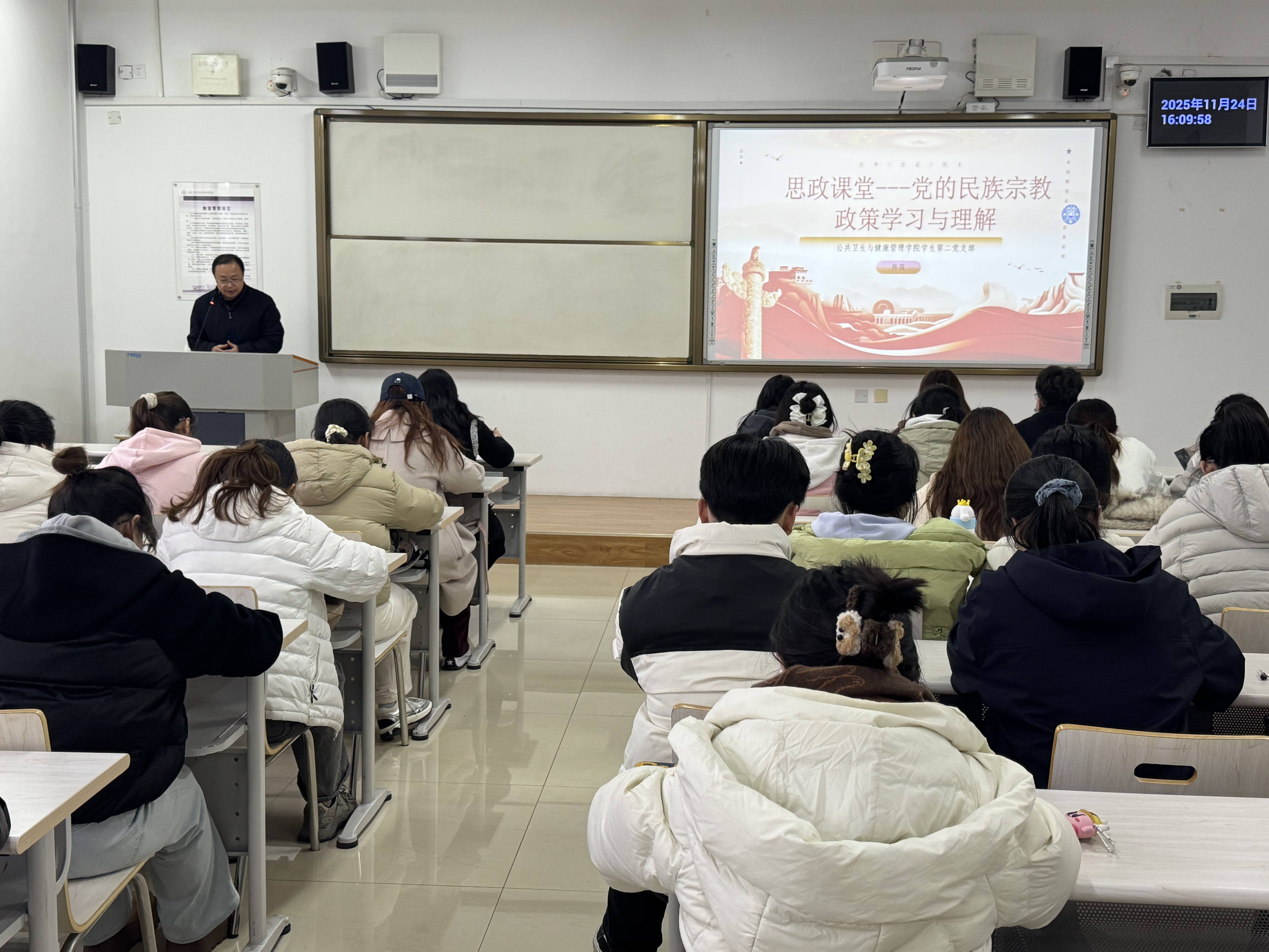 随后,陈强老师以 “民族团结与宗教信仰” 为主题开展专题党课,从理论内涵、政策要求、实践案例等方面,阐述了维护民族团结、坚持宗教信仰自由政策的重要意义,强调要筑牢中华民族共同体意识,自觉抵御各类宗教极端思想渗透。