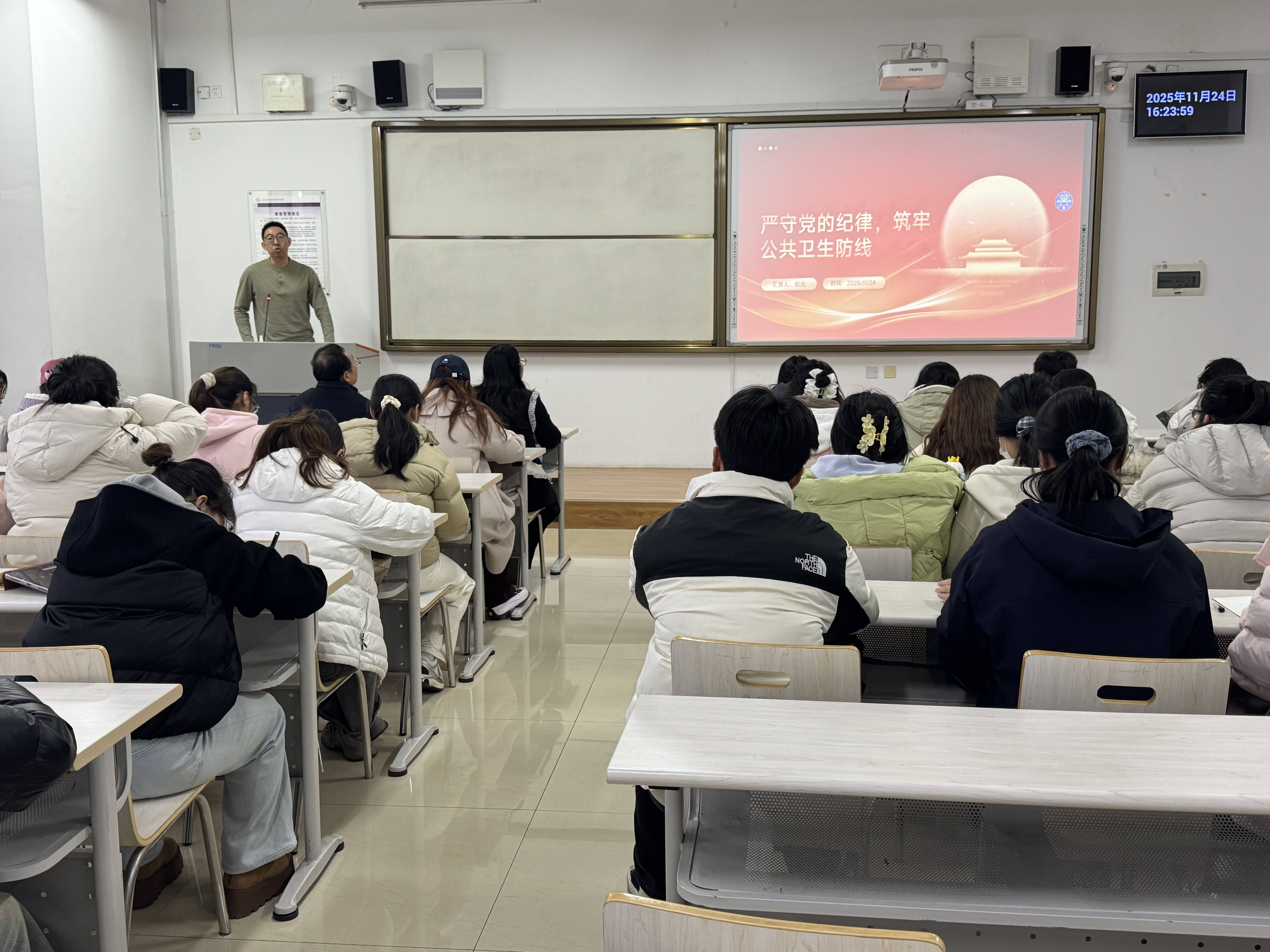 最后,纪元老师围绕“严守党的纪律,铸牢公共卫生防线”作主题分享,结合新冠疫情期间的实际工作经验,深入解读了党的纪律建设要求,倡导全体党员时刻绷紧纪律之弦,在公共卫生安全工作中发挥先锋模范作用,共同守护校园安全稳定。