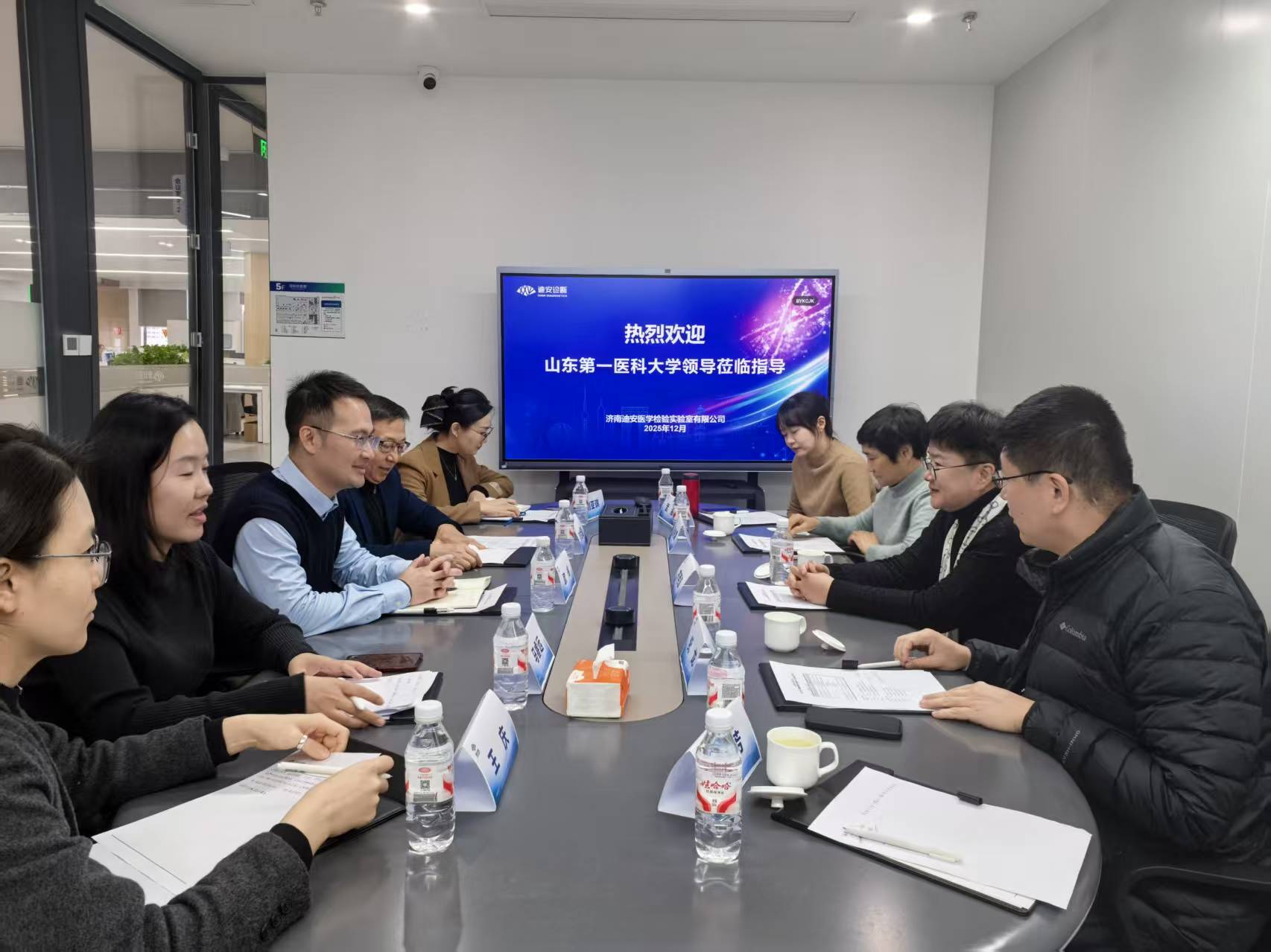 为进一步深化协同育人机制、完善人才培养方案,精准对接行业用人需求,近日,学院党委副书记齐艳波、党委委员、副院长纪龙带领学院相关负责人一行五人赴济南迪安医学检验中心(以下简称“迪安检验中心”)进行深度洽谈。