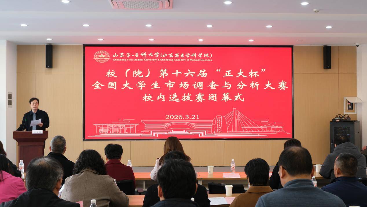 3月21日,“正大杯”第十六届全国大学生市场调查与分析大赛山东第一医科大学校内选拔赛在济南校区公卫楼成功举办。本次大赛由校(院)教务部主办,公共卫生与健康管理学院、运动医学与康复学院、医药管理学院共同承办。