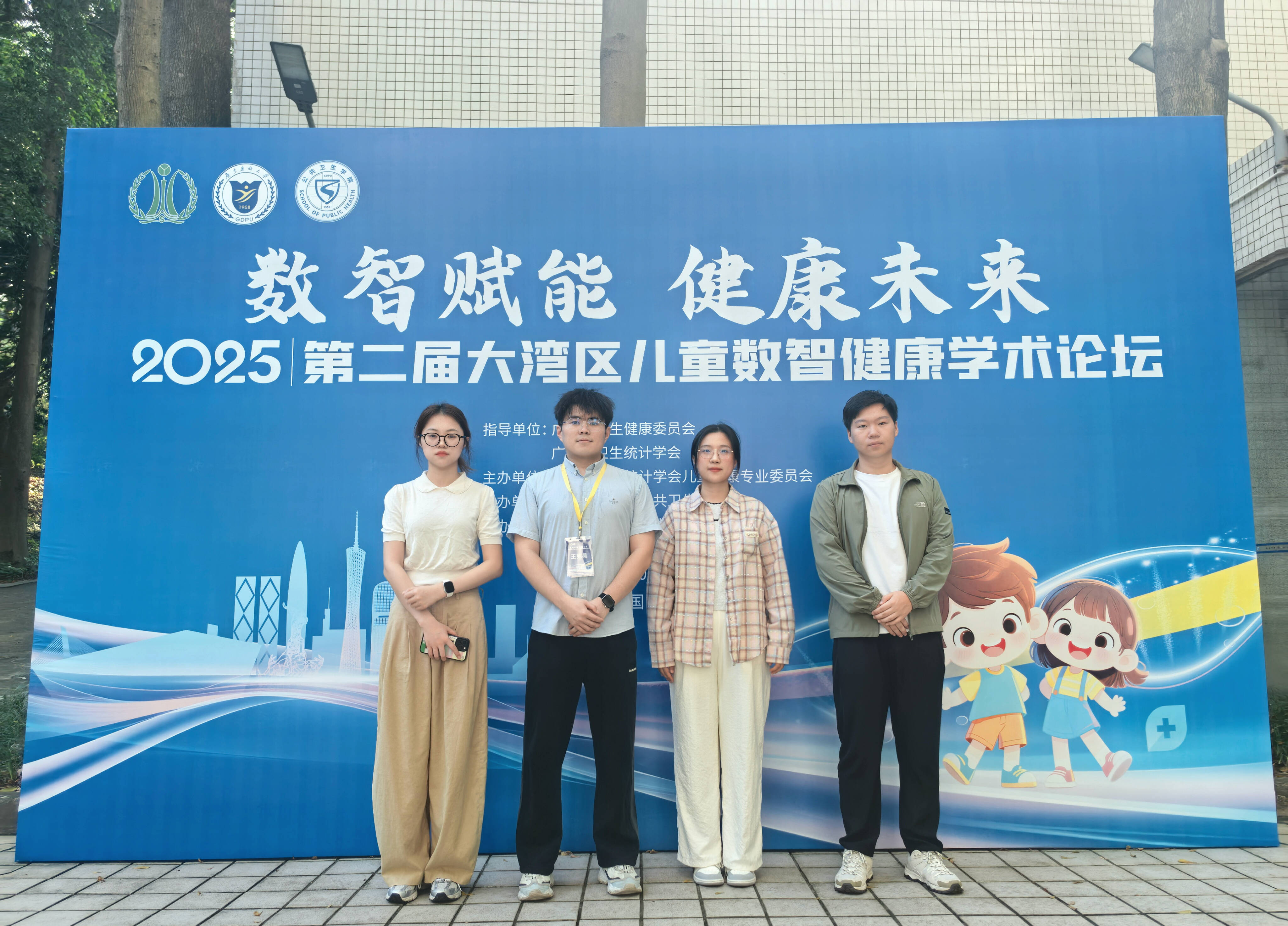 2025年10月18日-19日,由广东省卫生统计学会儿童健康专业委员会主办,广东药科大学公共卫生学院承办,中山大学公共卫生学院协办的广东省卫生统计学会儿童健康专业委员会第二届大湾区儿童数智健康学术论坛在广东省广州市隆重举行,学院青年教师陈学禹带领部分研究生参加本次学术会议。