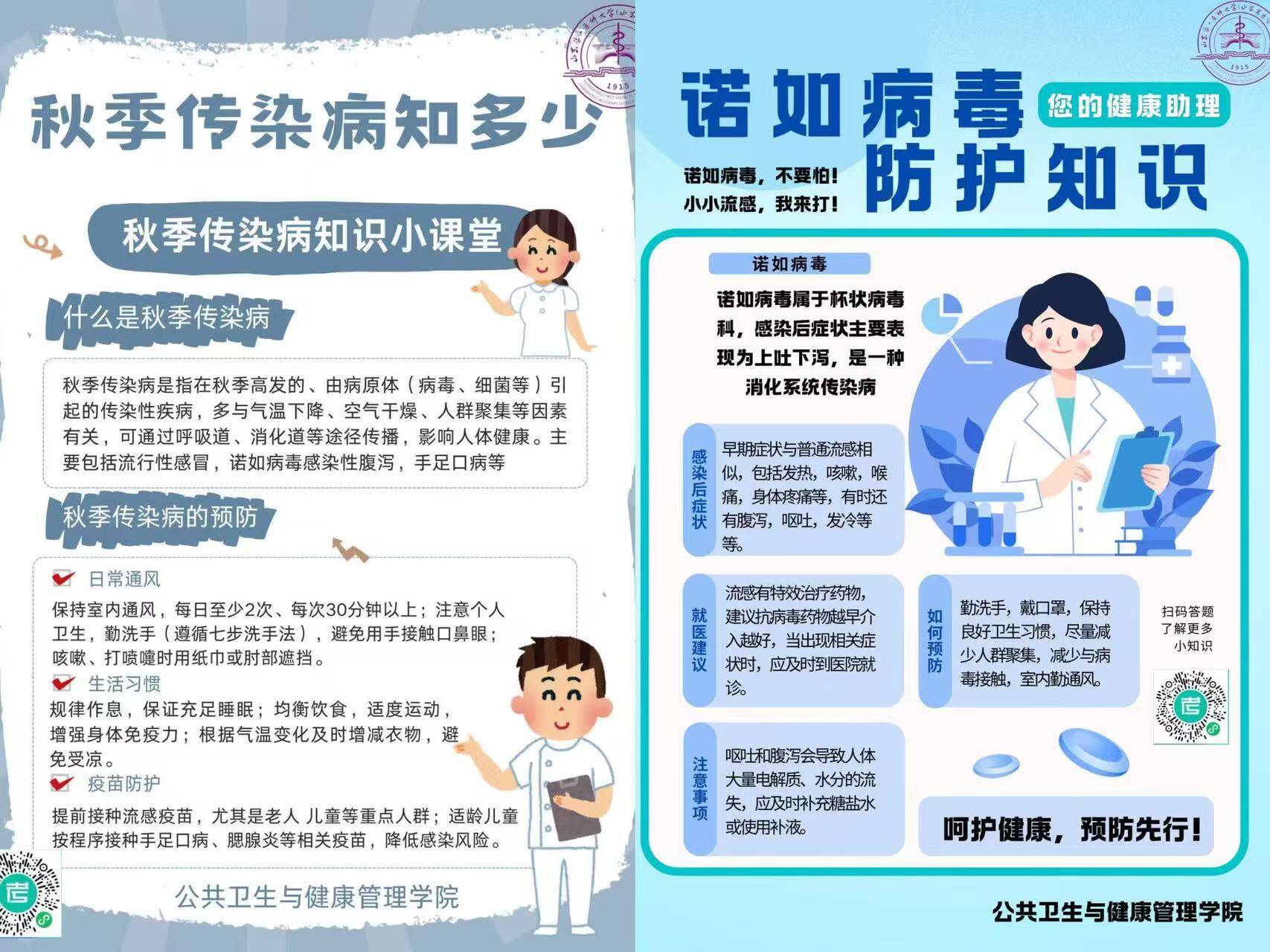 本次活动通过发放宣传手册、线上扫码答题等形式普及秋季传染病知识。宣传手册聚焦秋季传染病的预防、诺如病毒防护知识等,小程序答题内容涵盖了秋季常见传染病的传播途径、易感人群、临床典型症状和预防要点。活动现场气氛热烈,同学们纷纷表示受益匪浅。