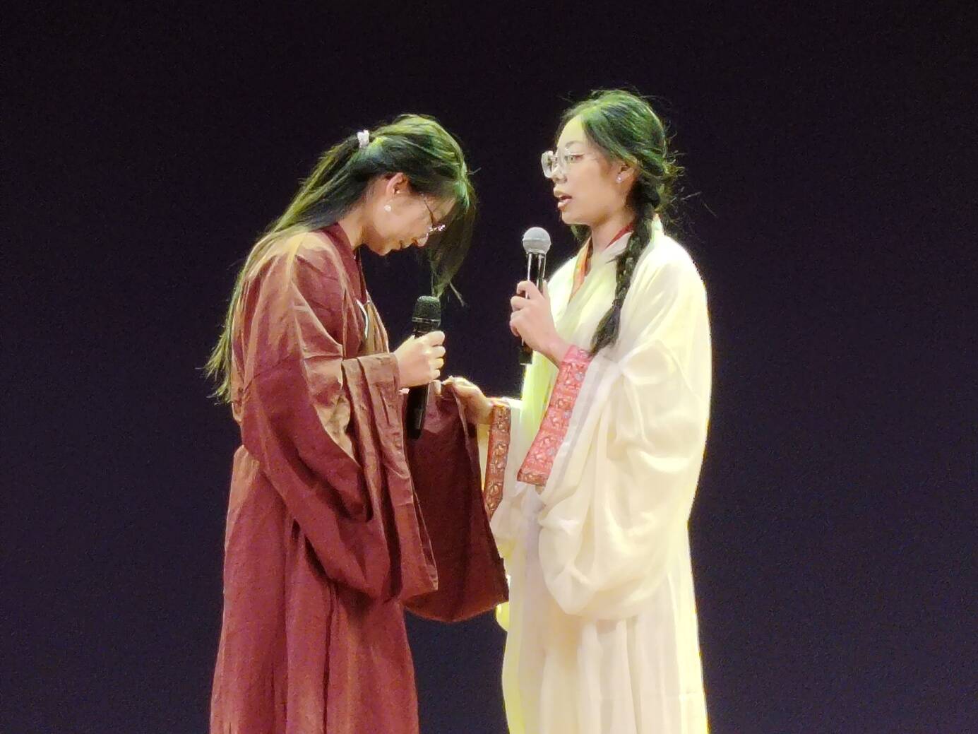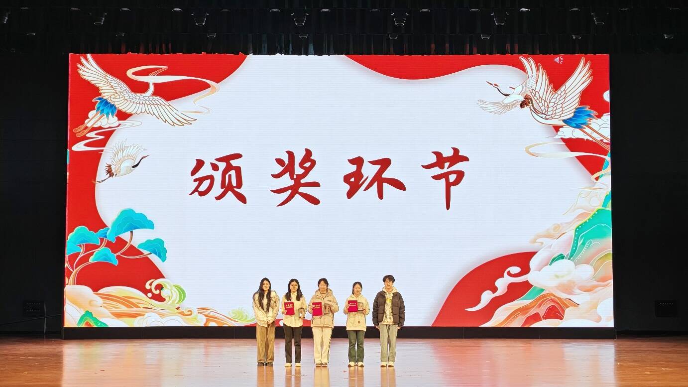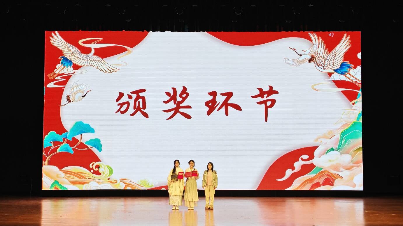 决赛尾声,一首悠扬的古风歌曲《怎叹》为整场赛事画上圆满句号。经过激烈比拼,最终评出一等奖二名,二等奖三名,三等奖三名,并评出“群贤共赏奖”一名。评委嘉宾为获奖队伍颁发荣誉证书并合影留念。