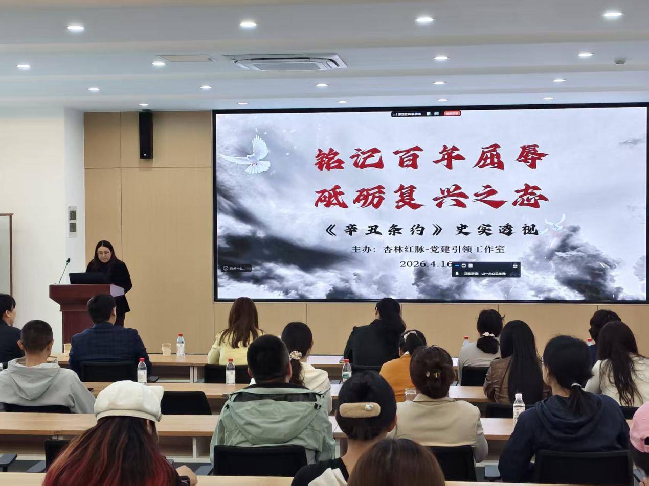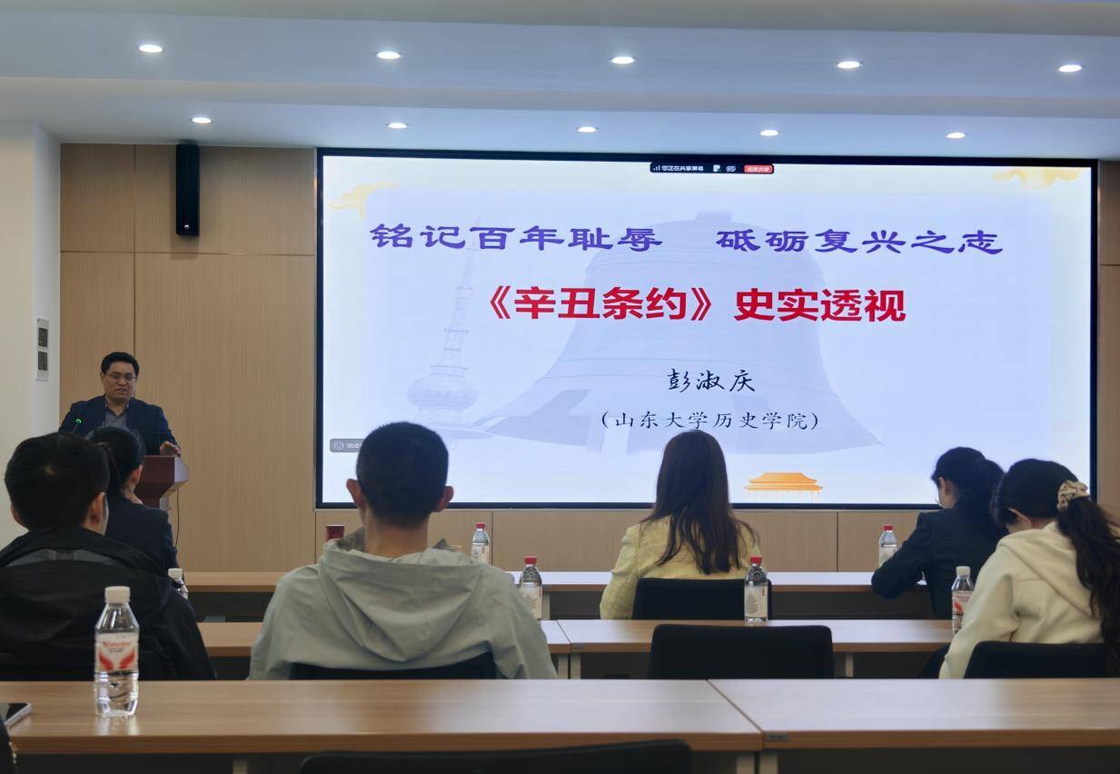 4月16日,由学院杏林红脉党建引领工作室承办的“历史大讲堂”在公卫楼127会议室正式开讲。作为学院深化“四史”学习教育、创新思政育人形式的重要实践,本期大讲堂特邀山东大学历史学院彭淑庆副教授担任主讲,带领师生穿越百年风云,在历史回响中汲取奋进力量。